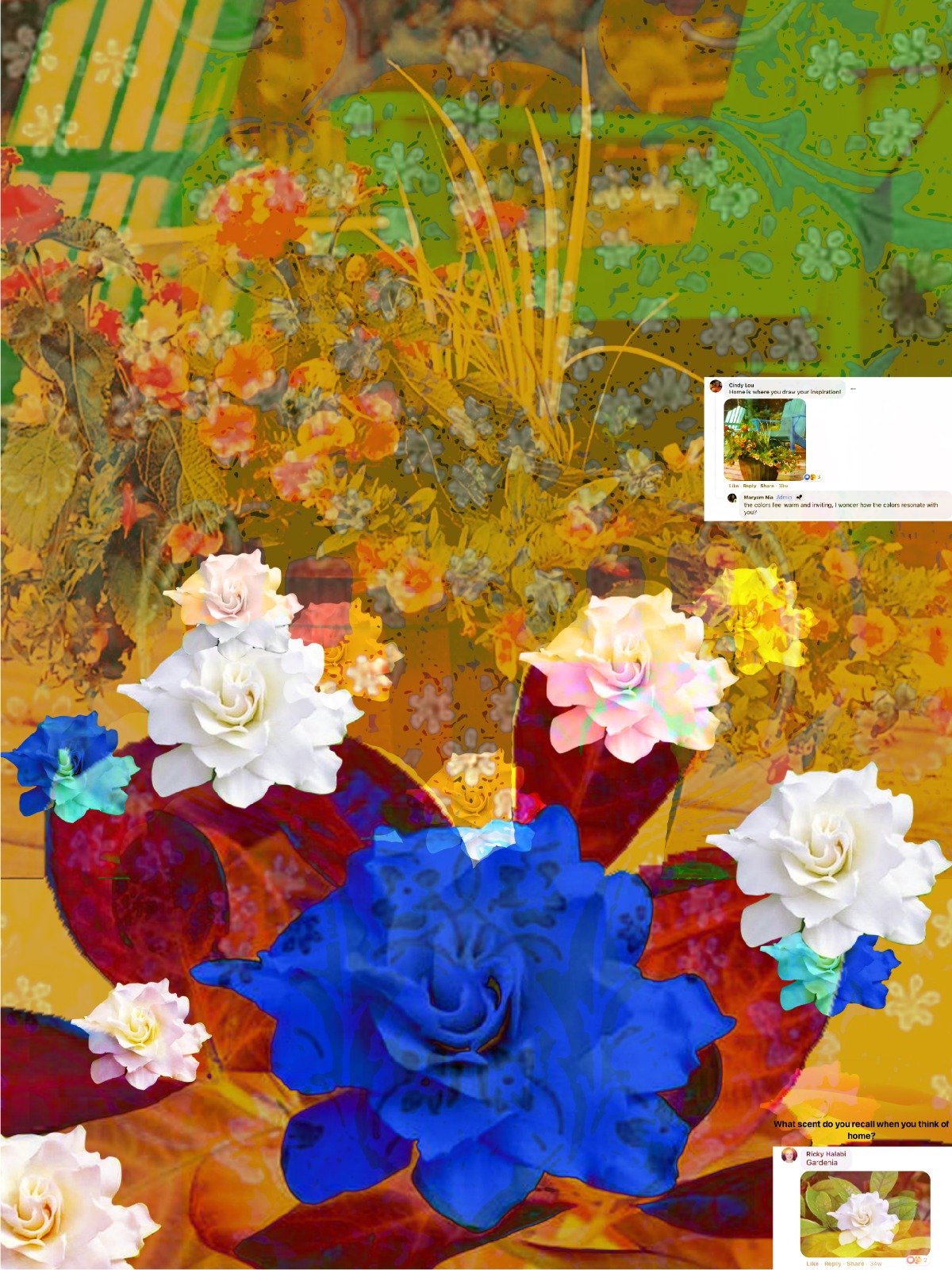 As it already had for many, social media and virtual calls became an even more important medium to connect to loved ones during the pandemic. Likewise, the internet became the primary means to collect data for William and Maryam’s research. In fact, the multiple layers of opened applications, documents, and browser tabs on users’ computer screens greatly influenced the visual aesthetics of their artwork.